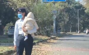 ကလေးမွေးဖွားပြီးသည့်နောက်တွင် ကလေးကို ပွေ့ချီပြီး လုပ်ဆောင်ရမည့် တာဝန်များကို ပျက်ကွက်မှုမရှိစေဘဲ လုပ်ဆောင်နေခဲ့သည့် ယာဥ်ထိန်းရဲမေတစ်ဦး၏ လေးစားဖွယ်လုပ်ရပ်