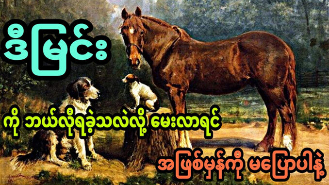 ဒီစကားကို ခင်ဗျား သေချာမှတ်ထားပေးပါ”“ မြင်းကို ကျွန်တော်ပိုင်ပြီပဲ… တစ်ခွန်းမက ဘူး..ခင် ဗျားကြိုက်သလောက် ပြောလို့ရတယ်”“ တကယ်လို့ လူတွေက ဒီမြင်းကို ခင်ဗျားဘယ်လိုရခဲ့သလဲလို့ မေးလာရင် အဖြစ် မှန်ကို မပြောပါနဲ့..ဒီစကားကို မှတ်ထားပေးပါ”“ဘာလို့လဲ…”“ဒီမြင်းကို ဘယ်လိုရခဲ့တယ်ဆိုတဲ့အကြောင်းအ မှန်ကို ခင်ဗျားပြောခဲ့ရင်