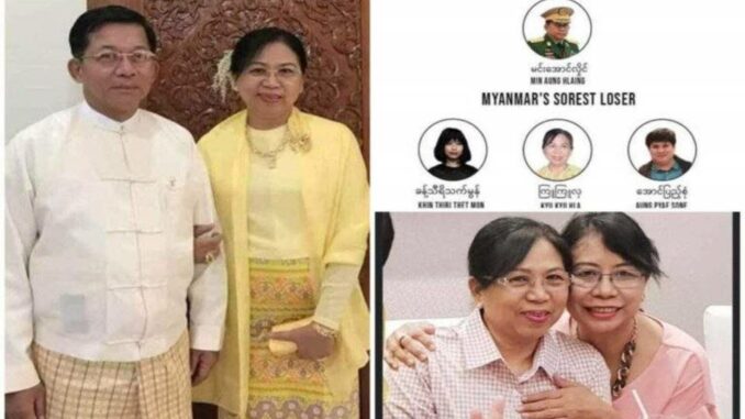 စစ်ကောင်စီရဲ့ မိသားစုဝင်တွေကတော့(၁) ဒေါ်ကြူကြူလှ (ဗိုလ်ချုပ်မှူးကြီး မင်းအောင်လှိုင်ဇနီး)၊(၂) ဒေါ်သန်းသန်းနွယ် (ဒုတိယဗိုလ်ချုပ်မှုးကြီး စိုးဝင်း ဇနီး)၊(၃) ဒေါ်သက်သက်အောင် ( ဗိုလ်ချုပ်မြထွန်းဦးဇနီး)၊(၄) ဒေါ်သန်းသန်းအေး (တင်အောင်စန်း ဇနီး)၊(၅) ဒေါ်အောင်မာမြင့် (ဗိုလ်ချုပ်ကြီးမောင်မောင်ကျော် ဇနီး)၊(၆) ဒေါ်ခိုင်ပပချစ် (ဗိုလ်ချုပ်ကြီးမိုးမြင့်ထွန်း ဇနီး)၊(၇) မိုးထက်ထက်ထွန်း (ဗိုလ်ချုပ်ကြီးမိုးမြင့်ထွန်း သမီး)၊(၈) ခိုင် မိုးမြင့် (ဗိုလ်ချုပ်ကြီးမိုးမြင့်ထွန်း သမီး)၊(၉) ရတနာမိုးမြင့် (ဗိုလ်ချုပ်ကြီးမိုးမြင့်ထွန်း သမီး)