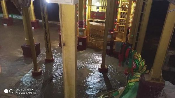 မေကြးတိုင္းေဒသႀကီး၊ မင္းဘူးၿမိဳ႕ ေ႐ႊစက္ေတာ္ဘုရား 5.8.2021 ည ( မန္းေ႐ႊစက္ေတာ္ ) ေအာက္စက္ေတာ္ရာ ရင္ျပင္ေတာ္ အေပၚ အထိ ေရတက္ေနပါၿပီ ။