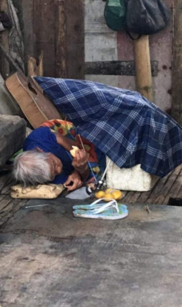 ေနအိမ္အျပင္ဖက္မွာ သားသမီးေတြက မေကြၽးေမြးလို႔ အိပ္စက္ေနခဲ့ရတဲ့ အဘြားအို