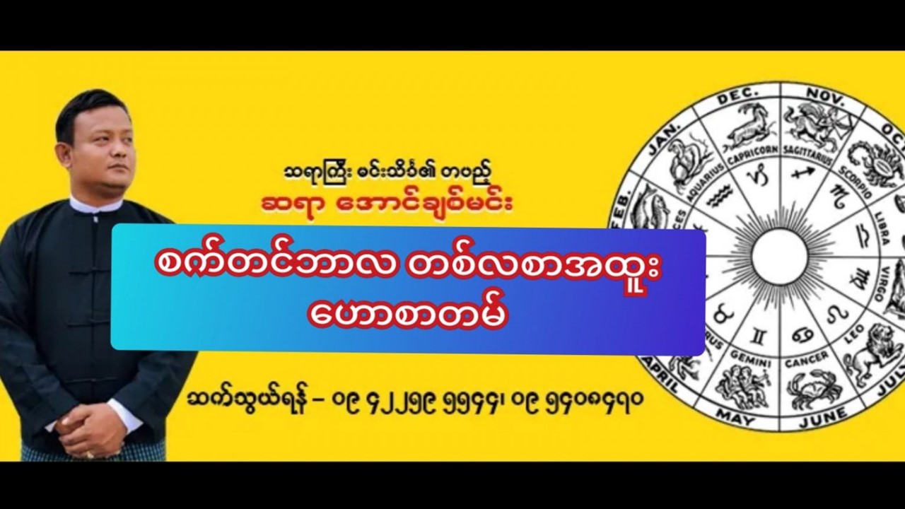 ထီးတစ္လက္ ဒါမွမဟုတ္ ဖိနပ္တစ္ရံ လက္ေဆာင္ရဖို႔ ရွိပါတယ္။ အင္မတန္ ေကာင္းပါတယ္။ အိမ္တြင္းေရး ပူပင္ေသာကေလးေတြ ရွိပါတယ္။ ကိုယ့္မိသားစုႏွင့္ အတိုက္အခံ ေျပာဆိုေနရတတ္ပါတယ္။ အိမ္ကိစၥ အေမြကိစၥ ဒီအခ်ိန္မွာ စကားေျပာရတတ္တယ္။ မတင္မက်လည္း ျဖစ္တတ္ပါတယ္။ ကိုယ့္မွာ အ႐ြယ္ေရာက္ၿပီးတဲ့ သားသမီးေတြ ရွိရင္ သူတို႔အတြက္ စိတ္ပူရတတ္ပါတယ္။ လူငယ္ေတြအတြက္ကေတာ့ အခ်စ္ေရး ေမတၱာေရး အင္မတန္ ေကာင္းပါတယ္။ လူငယ္ေတြ စန္းပြင့္မယ့္ အခ်ိန္ကာလပါပဲ။ ခ်စ္သူႏွင့္ စိတ္သေဘာထားျခင္း တိုက္ဆိုင္မႈ႕ ရမယ္။ အိမ္ေထာင္ရွိသူေတြ အေနႏွင့္ကေတာ့ အိမ္ေထာင္ေရးမွာ ကေတာက္ကဆေလးေတြ ျဖစ္တတ္ပါတယ္။ က်န္းမာေရး အေနႏွင့္ကေတာ့ ေလေအာင့္တာ ျဖစ္တတ္ပါတယ္။ ဝက္သား ေရွာင္ပါ။ အရက္ေရွာင္ပါ။ ထီထိုးရင္ေတာ့ (၂-၇-ဝ)ပါေအာင္ ထိုးပါ။ ယၾတာအေနႏွင့္ကေတာ့ နန္းႀကီးသုတ္ အလႉဒါနျပဳပါ။ ေငြထီး လႉပါ။ တံခြန္လႉပါေလ..။
