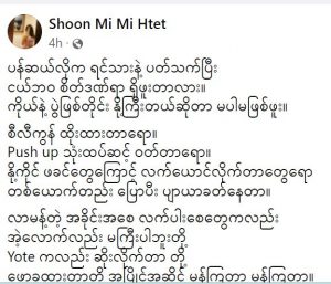 စီလီကွန်ထိုးထားတာရော push up သုံးထပ်ဆင့်ဝတ်တာရော နို့ကိုင်ဖခင်တွေကြောင့် လက်ရောင်လိုက်တာတွေရောတစ်ယောက်တည်း ပြောပြီး ပြာယာခတ်နေတာ