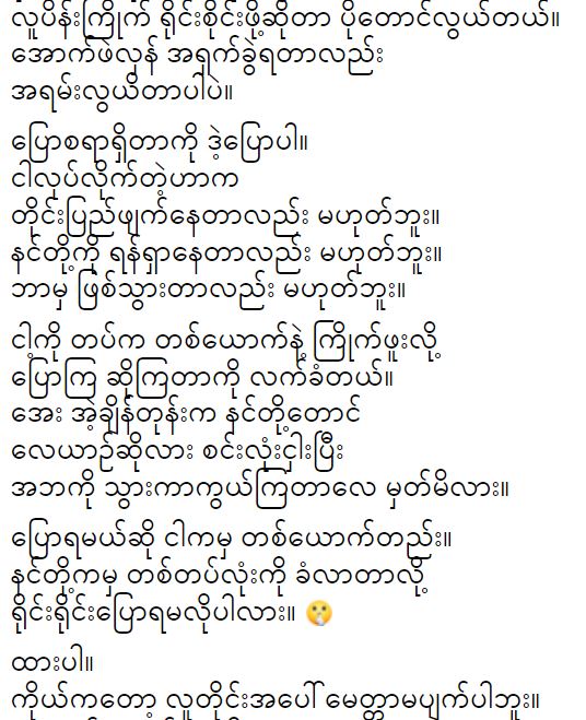 ငါလည်းတစ်နေ့ကြီးပါစေတော့ဆိုပြီး ပန်ဆယ်လိုနဲ့သူ့ဖန်တွေကိုစိတ်ထိခိုက်ပါစေတော့ဆိုပြီး အထူးတလည်အားထုတ်တာလည်းမဟုတ်ဘူး..နင်တို့ဘာသာမကြီးတာ နင်တို့စောက်ကြောင်းလေ…