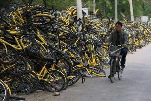အနောက်နိုင်ငံများက yellow invasion ဟုခေါ်သည်အထိ Ofo စက်ဘီးအဝါများ စည်းမရှိ နေရာတကာတွင် စွန့်ပစ်ထားခြင်းကို တွေ့ရသည်။