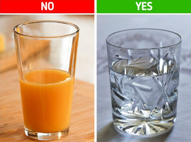 မနက်စာအတွက်ဖျော်ရည်သောက်တာက ကျန်းမာရေးနဲ့ မညီညွတ်ပါဘူး။ ဖျော်ရည်တွေမှာ သကြားဓာတ်တွေ အများကြီးပါတာကြောင့် ဝမ်းဗိုက်မှာ အဆီစုစေပါတယ်။ အချိုဓာတ်များတဲ့ ဖျော်ရည်တွေအစား ရေကိုများများ သောက်ပါ။ ရေက ကိုယ်အလေးချိန် ကျစေဖို့လည်း အကောင်းဆုံး သောက်စရာပါ။