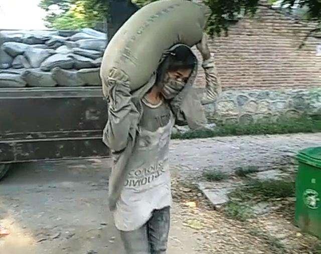 မိန္းကေလးသည္ ေလးလံေသာဘိလပ္ေျမအိတ္မ်ားစြာကို အမ်ိဳးသားမ်ားနဲ႔တန္းတူ ရင္ေဘာင္တန္းၿပီး ပခုံးနဲ႔ထမ္းသယ္ပို႔ရသည့္အလုပ္ကို လုပ္ကိုင္လ်က္ရွိၿပီး တစ္ခါတစ္ေလ အရမ္းပင္ပန္းလြန္းသည့္ဒဏ္ေၾကာင့္ မခံႏိုင္ေတာ့ပဲ မ်က္ရည္ပင္က်ခဲ့ရသည္။
