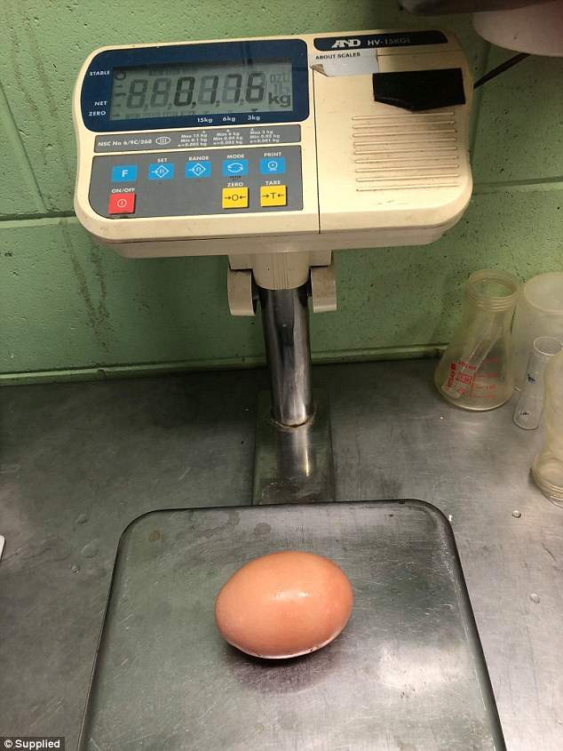 အဆိုပါကြက်ဥရဲ့ အလေးချိန်မှာ 176 gရှိပြီး ၊အခြားကြက်ဥတွေရဲ့အရွယ်အစားထက် 3ဆခန့်ကြီးနေကြောင်းသိရှိရပါတယ် ။အဆိုပါကြက်ဥကိုတွေ့ရှိတော့ အခြားအလုပ်သမားတွေလည်း ထူးဆန်းလို့ အကုန်လုံးဝိုင်အုံကြည့်ခဲ့ကြပါတယ် ။ထို့နောက် အဆိုပါကြက်ဥကိုဖောက်ခဲ့ချိန်မှာတော့အထဲမှာနောက်ထပ်ကြက်ဥတစ်လုံးရှိနေတာကို မယုံကြည်နိုင်လောက်အောင် ထပ်မံတွေ့ရှိခဲ့ရပြန်ပါတယ် ။ ဒီလိုဖြစ်ရပ်မျိုးဟာ တစ်သက်မှာတစ်ခါကြုံတွေ့ဖို့ မလွယ်ကူနိုင်တဲ့ဖြစ်ရပ်မျိုးပါ ။
