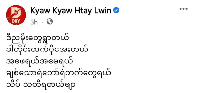 သရုပ်ဆောင်မင်းမော်ကွန်းက ဒီညမိုးတွေရွာတယ်၊ခါတိုင်းထက် ပိုအေးတယ်၊ အဖေရယ်အမေရယ်၊ ချစ်သောရဲဘော်ရဲဘက်တွေရယ်၊ သိပ် သတိရတယ်ဗျာ ဆိုပြီးသူ့ရဲ့လူမှုကွန်ယက်စာမျက်နှာထက်မှာ ရေးသားဖော်ပြထားပါတယ်၊ စာဖတ်ပရိတ်သတ်ကြီးများအတွက်ပြန်လည် တင်ဆက်ပေးလိုက်ပါတယ်နော်။