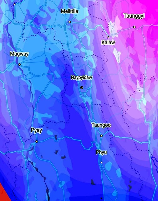 May be an image of map, sky and text that says ‘Meiktila Taunggyi Magway Kalaw Naypyidaw Pyay Taungoo Phyu’